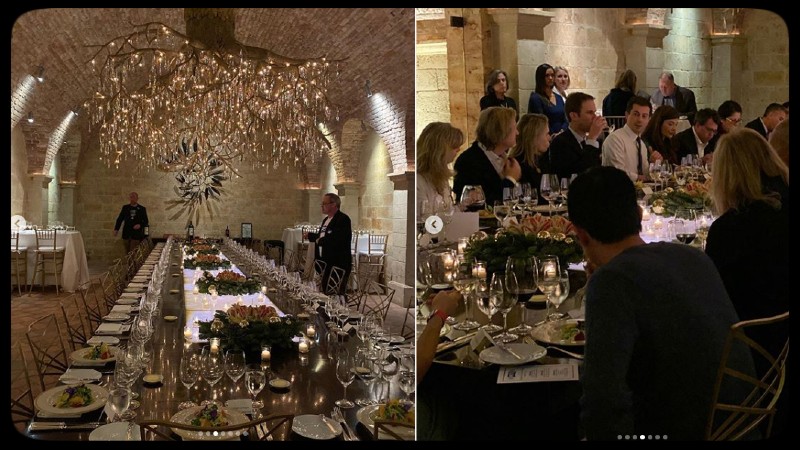 Photos of a Bay Area fundraiser on Sunday night for Buttigieg called “An Evening in the Vineyards with Mayor Pete” show what appears to be a luxury underground affair featuring not only the candidate himself eating dinner but a hell of a chandelier.