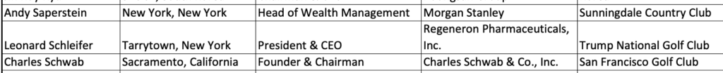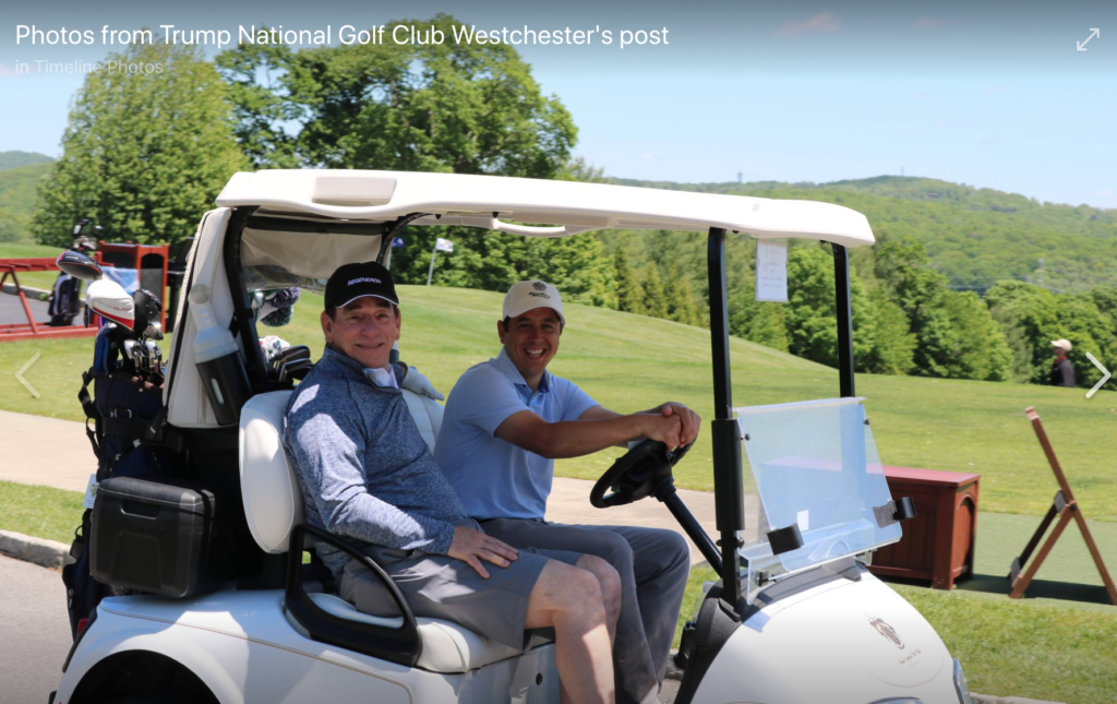 The Trump Westchester Facebook page features a May 2019 photo of Dr. Schleifer golfing there, and displays his name on a Club Championship board in a photo from July 2018. In 2015, the Wall Street Journal reported that Regeneron was cutting back its executive perks, including Leonard Schleifer’s $18,500 golf membership, but did not mention which particular club.
