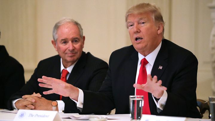 At least 17 of the 24 billionaire donors to the RNC legal fund are among the top 400 wealthiest American households as ranked by Forbes magazine, including the following: Kelcy Warren, CEO of natural gas and propane pipeline giant Energy Transfer Partners, net worth $4.3 billion; Stephen Schwarzman, CEO of The Blackstone Group private equity firm, net worth $17.7 billion; and Charles Schwab, net worth $7.7 billion. Two more top donor families, those of Fertitta brothers Lorenzo and Frank III, fall just outside the top 400 richest Americans, with net worth around $1.6 billion apiece.