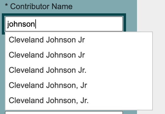 Before the January update, a site user could see all donations given under a last name within a certain date and dollar amount. Now, instead of being able to search by name, researchers must enter a name, wait for a drop down menu to load, and then select a specific individual. If an individual has donated under variations of their name, the donations are listed under separate entries — often making it impossible to see an individual’s entire donation history at once.
