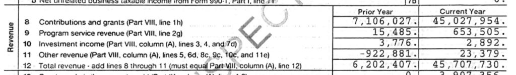 More than $25 million of CPI’s revenue came from a single anonymous individual, and at least six other anonymous individuals donated $1 million or more. CPI’s total revenue for 2021 was reported to be more than $45.7 million, compared with $6.2 million the previous year, after accounting for negative revenue.