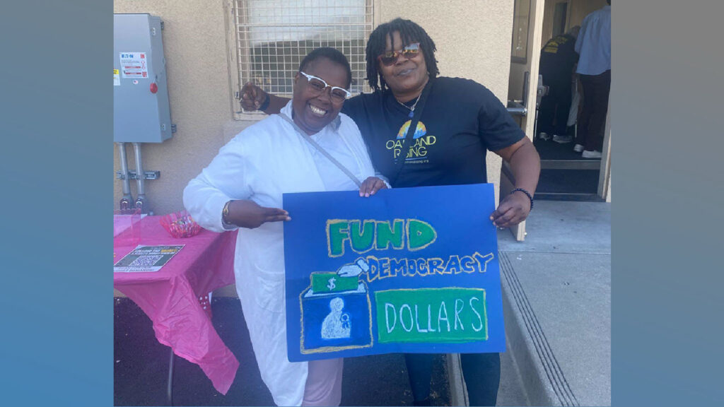 Oakland Rising is encouraging local supporters of democracy dollars to attend council district budget meetings and keep the program’s rollout on schedule. “Folks are going to each of the town halls and talking directly to each of the council members about what it could look like to fund this program,” suk said.