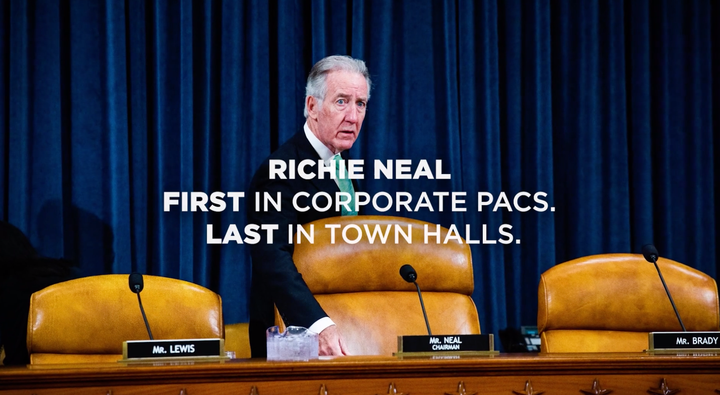 The ad features a headline from a Sludge article that found that Neal was the top recipient of corporate PAC donations in 2019.