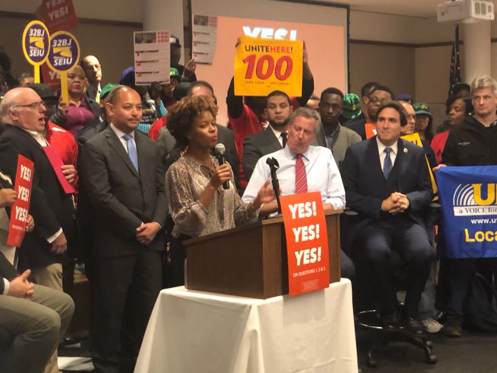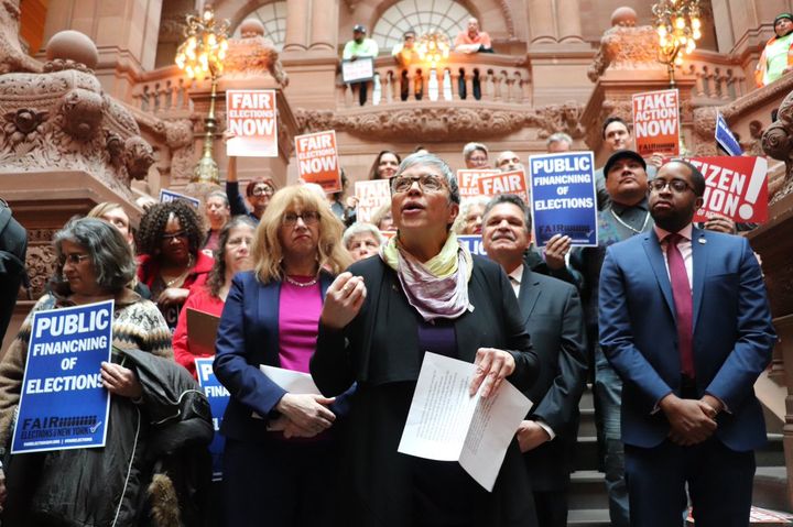 A coalition including national money-in-politics groups Every Voice and the public policy organization Demos, as well as good-government groups Reinvent Albany and major labor unions, rallied last week in support of a ballot initiative that seeks to strengthen New York City's campaign finance system